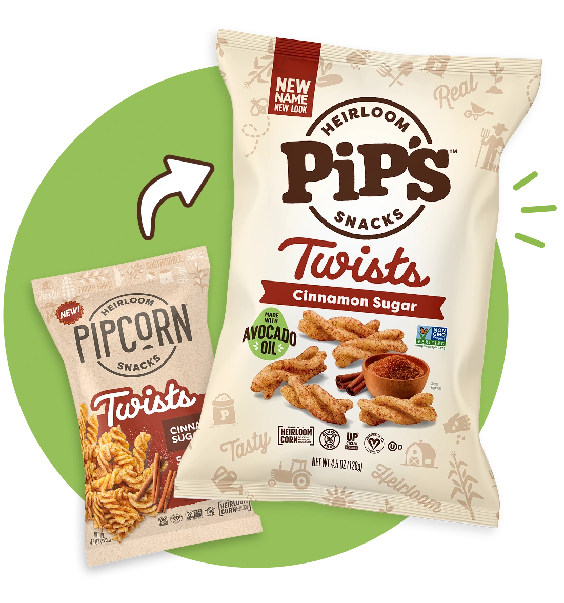 Pipcorn is now Pip’s! And just like it’s been since day one, heirloom corn isn’t just an ingredient to us, it’s our philosophy. Like all cherished heirlooms, our seeds are passed down through generations and nurtured by family farmers to deliver rich flavor and irresistible crunch in every bite. Made with real, non-GMO ingredients and clean oils like Avocado and high-oleic expeller pressed Sunflower oil, Pip’s is a delicious reminder that the best things are meant to be shared. Heirloom makes us different. Heirloom makes it better.